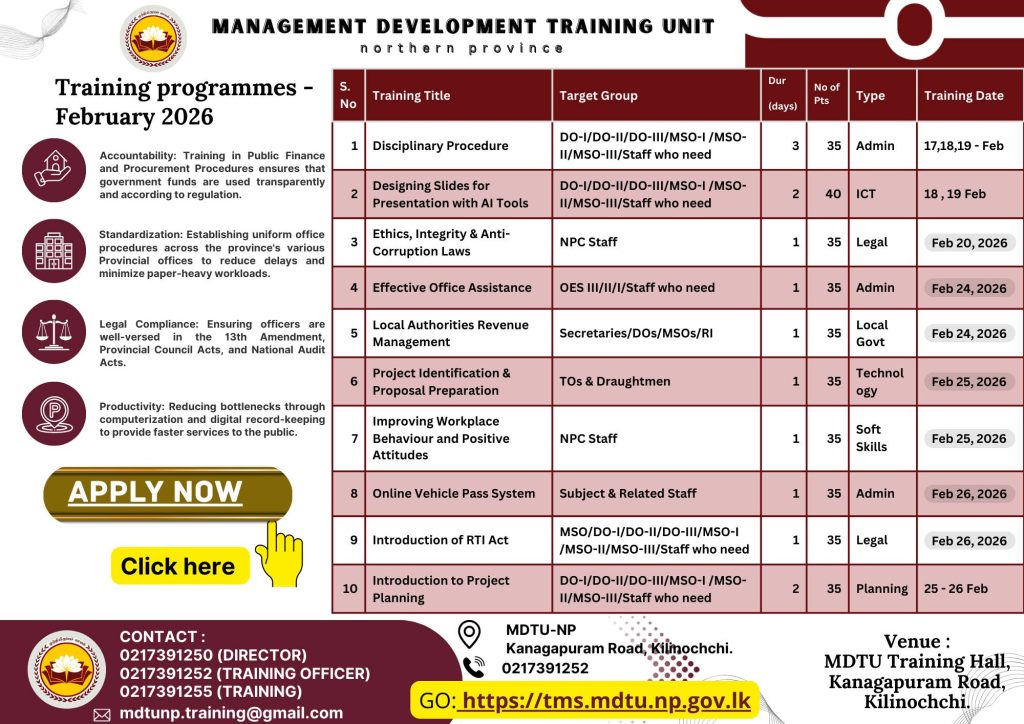 Inquires? Call: +94 21 734 1252